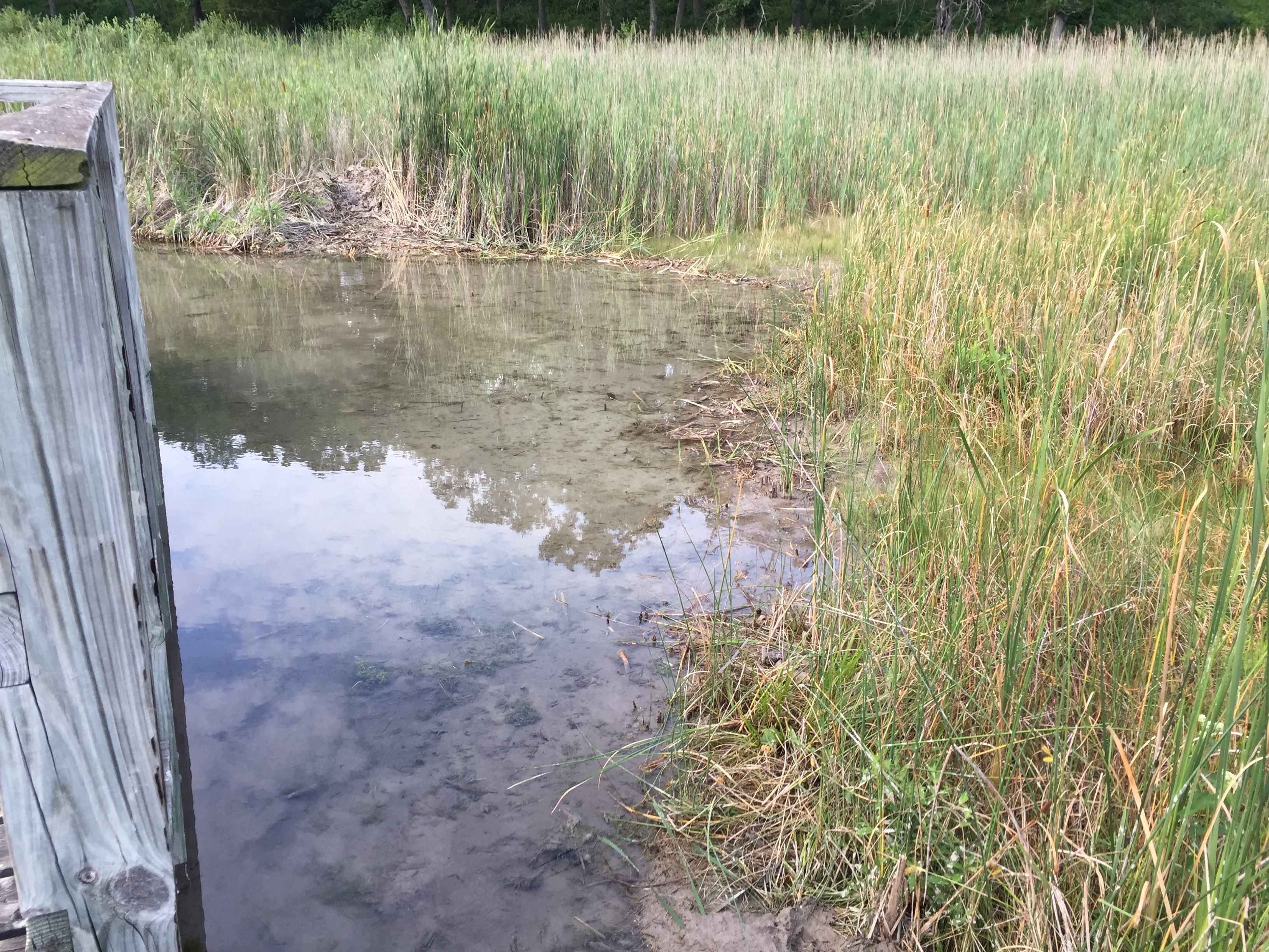I’ve been concentrating on other weeds this summer and feeling sanguine about the prospect of significantly reducing the exotic, invasive plants, at The Springs and the Ottawa Lake Fen SNA.  One of the weeds I’ve been working on is narrow-leaved cattail — in cases where it is dominating springs or blocking the main channel down the river.  There are many springs on the east/right side of the observation deck at the Emerald Spring that were totally covered in cattails.  Here are before and after views.