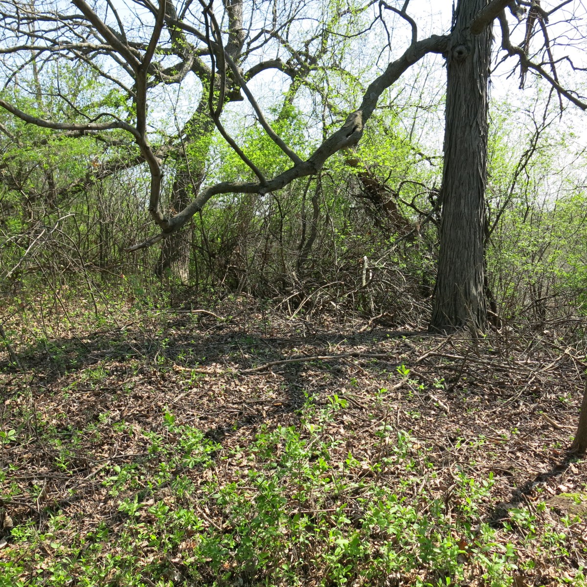 Using only hand tools we managed to clear a lot of brush, including the area around this beautiful hickory and the white oak shown below